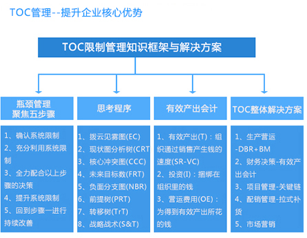 TOC是一套管理理念與管理工具的結(jié)合,它把企業(yè)在實現(xiàn)其目標(biāo)的過程中現(xiàn)存的或潛伏的制約因素稱為“約束”,通過逐個識別和消除這些約束,使得企業(yè)的改進方向和改進策略明確化,從而達到幫助企業(yè)更有效地實現(xiàn)其目標(biāo)的目的。通過建立與實施TOC管理模式,持續(xù)推進與貫徹落實自主經(jīng)營管理,促進企業(yè)管理標(biāo)準(zhǔn)化、簡單化、高效化,實現(xiàn)內(nèi)部管理的持續(xù)改善。在文化層面,尊重激勵員工發(fā)揮潛能,打造并維持持續(xù)改進的文化;在人才培養(yǎng)層面,培養(yǎng)和提升員工技能,讓其成為員工成長及交流的平臺。